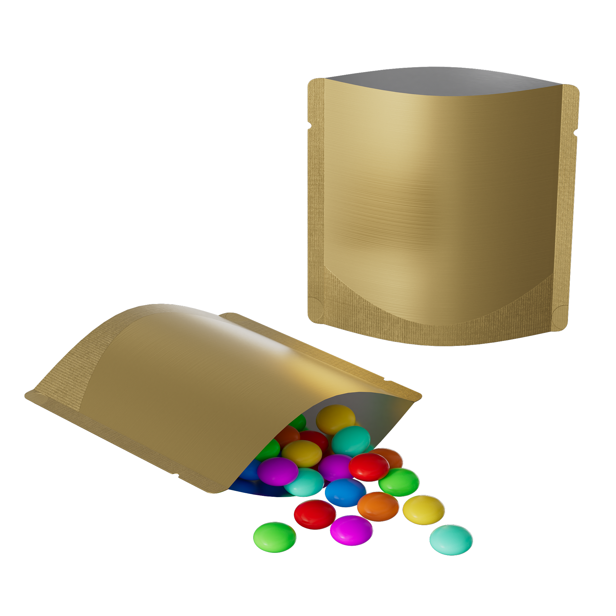 Elegant and smooth, the Satin Gold stand-up bag offers a refined balance of luxury and practicality. The soft matte sheen gives this metallic finish a subtle glow, while the stand-up design eliminates clutter and keeps items within reach. Perfect for high-end products, this bag enhances presentation while delivering reliable performance.