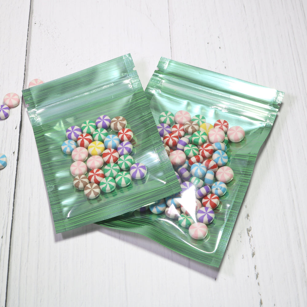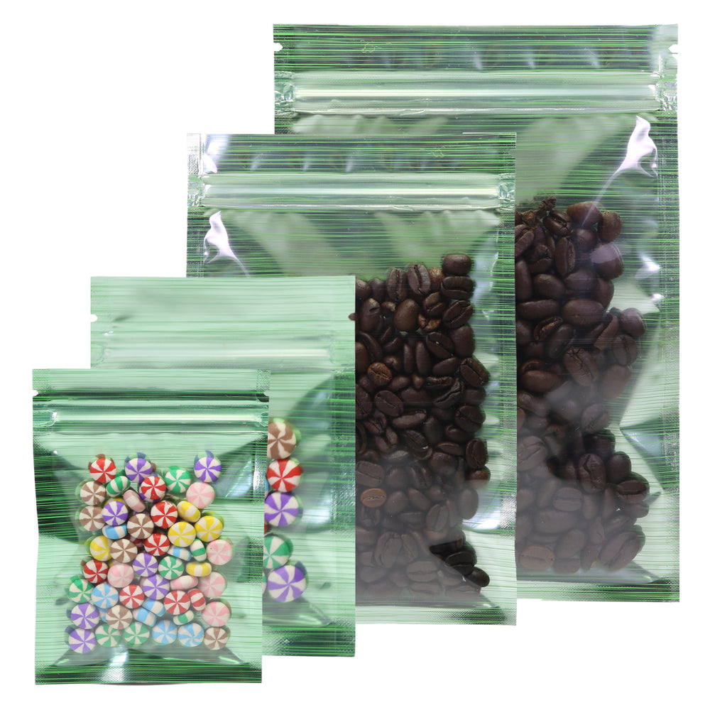By using our half-green apple QuickQlick® bag for your products, you're sure to see the “fruits” of your labor. This bag is single-sided so that you can see everything that you place inside. Also, the inside of the bag consists of horizontal stripes going over the tasteful green coloring. Made with a combination of metallic film and poly-plastic material, this bag is thin, flexible, water-resistant, protective, and food safe. Plus, the resealable zipper seal lets you reuse the bag over and over. That’s a whole lot of good qualities!