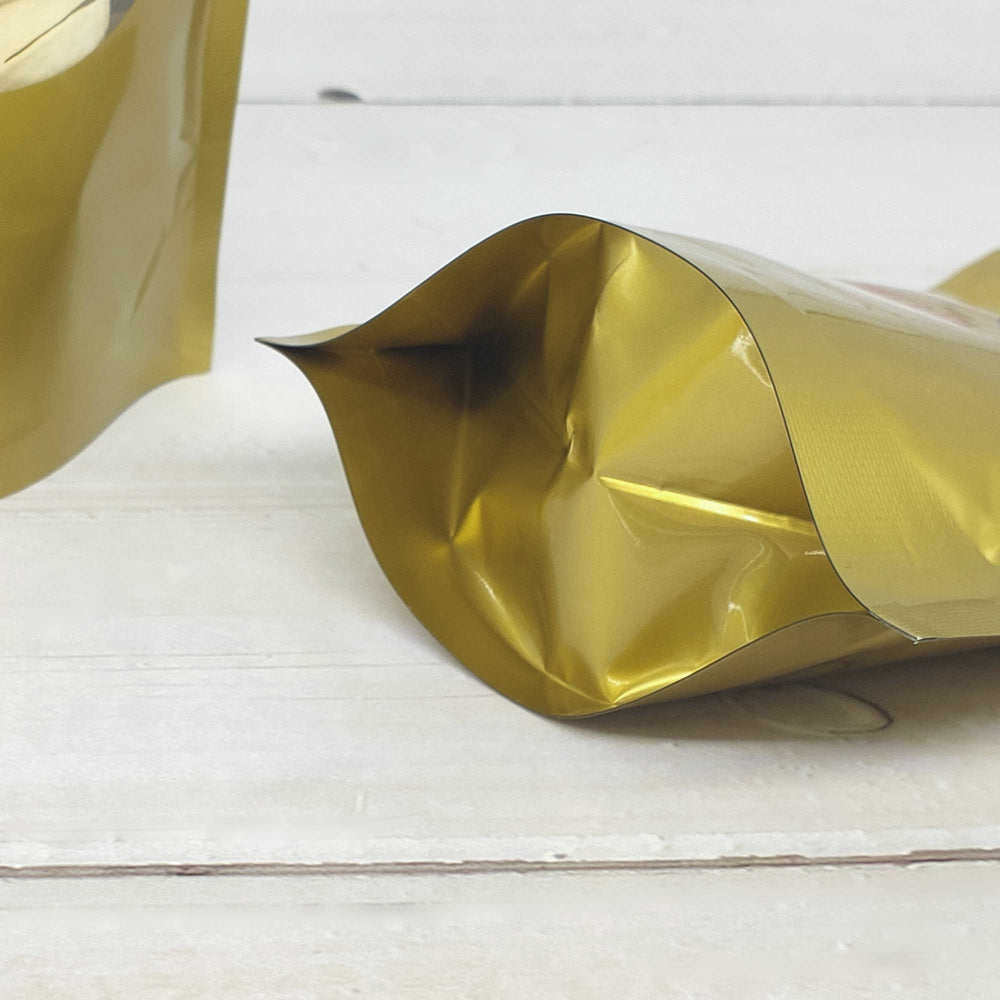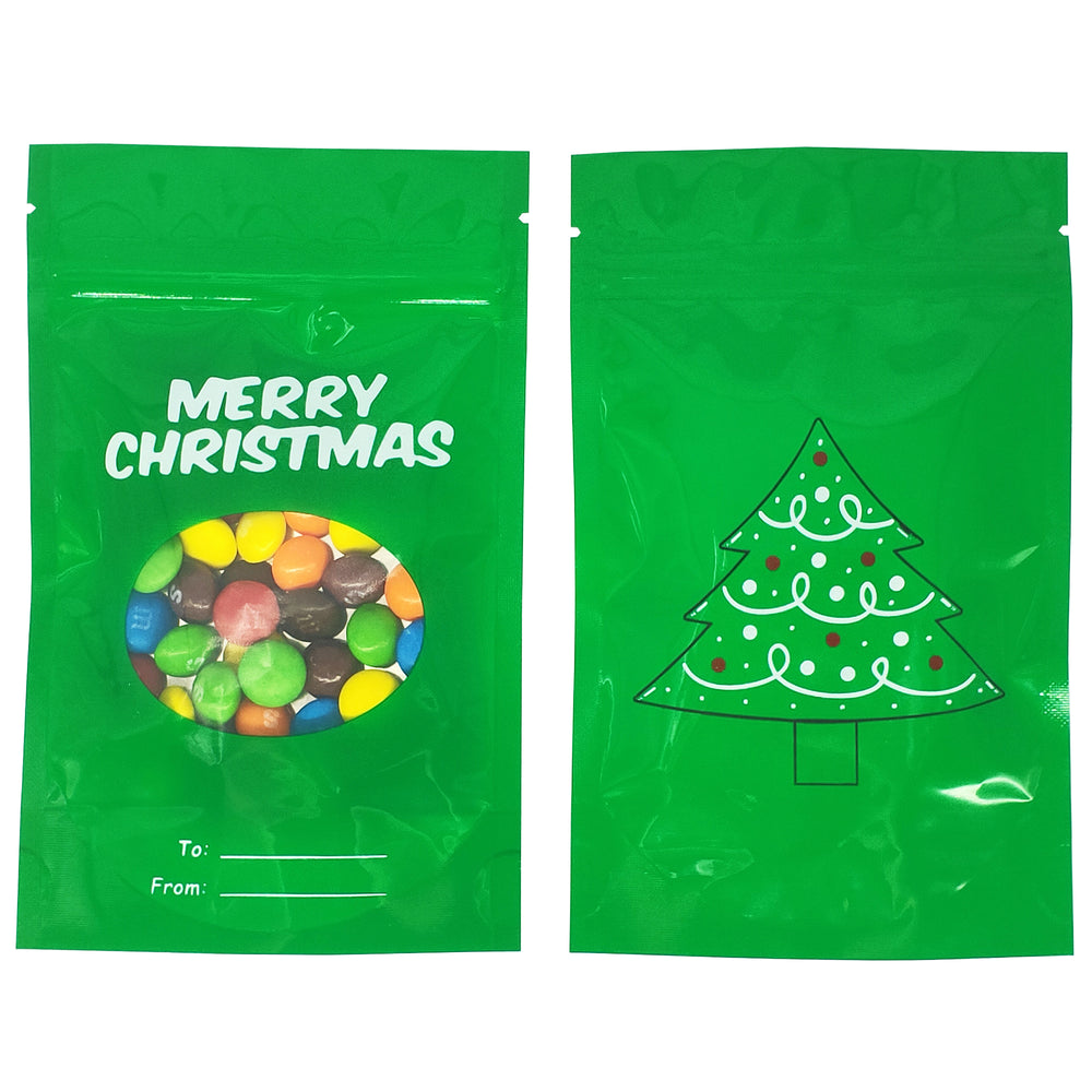 These bags are a beautiful and convenient way to showcase and store your product. The bags feature a vibrant Christmas design print that is sure to bring joy to any holiday occasion. With a secure zipper seal closure, the bags stay securely closed so your items won't fall out. The bags are also heat sealable, providing an airtight and water-resistant seal, and a clear window on the front of the bag gives your products a professional look that is sure to draw attention. Perfect for gifts or small items, these Glossy Christmas Design Round Window Plastic and Mylar Stand Strong® Bags will make your products stand out and show off your holiday spirit.