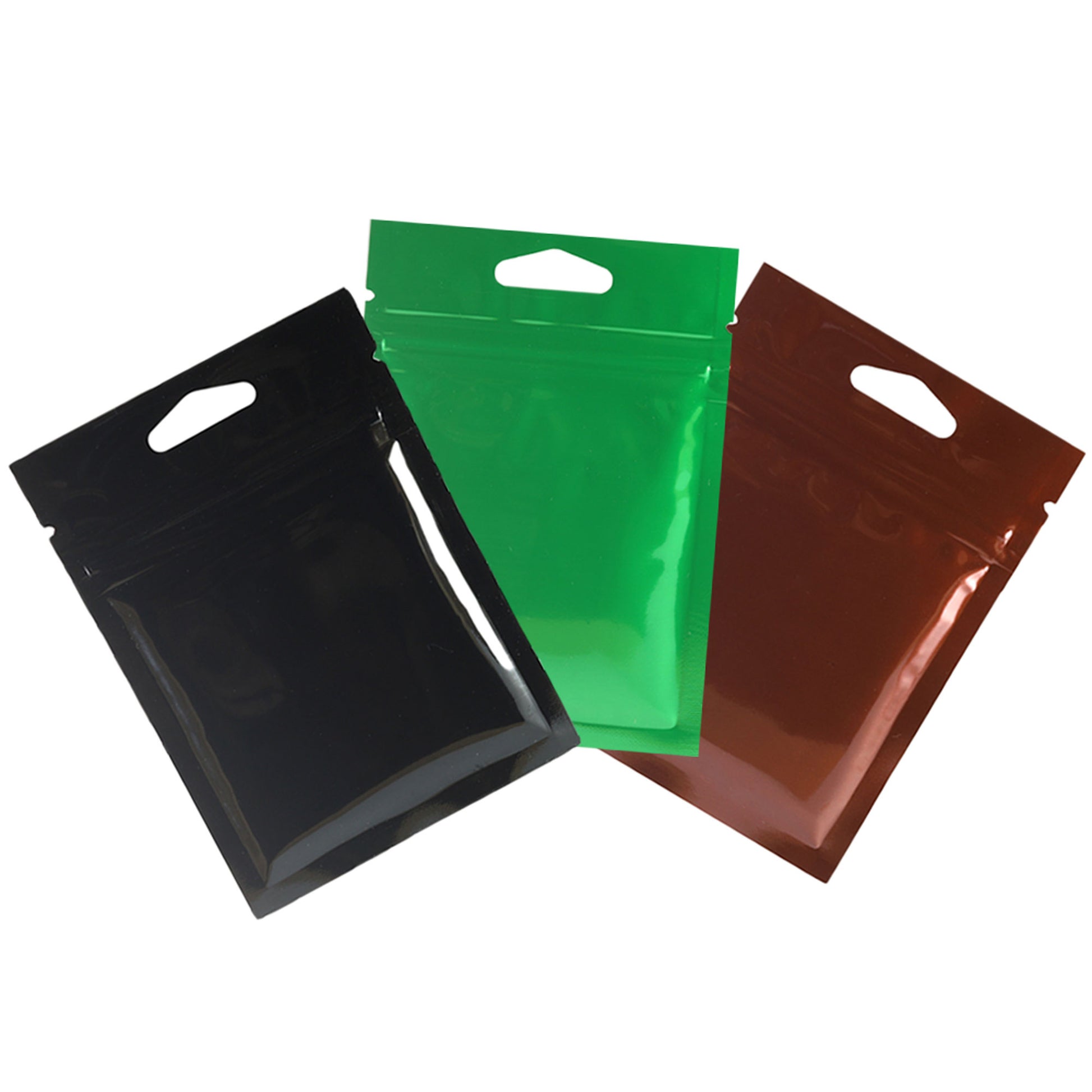 3.15 Inch x 4.33 Inch Glossy Double-Sided Mylar Foil Zipper Seal Bags with Triangle Hang Hole