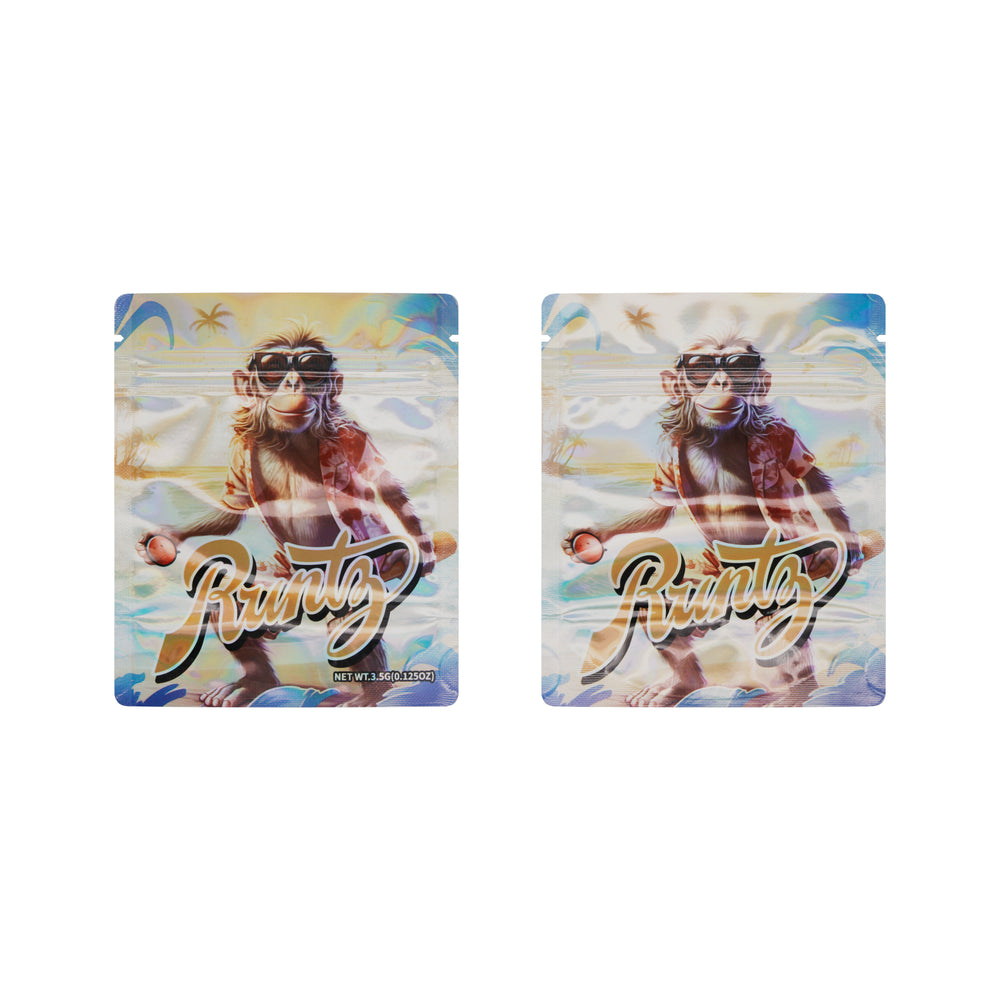 Each 3.5g pouch features a unique and vivid design—from urban animals and space themes to bold, animated graphics—perfect for showcasing your brand or product with style. Crafted from high-quality, durable foil material, these bags are resealable, heat-sealable, and built to lock in freshness. Their Stand Strong® structure offers superior stability on shelves, while the holographic finish adds a striking visual appeal. Ideal for herbs, edibles, or small accessories.
