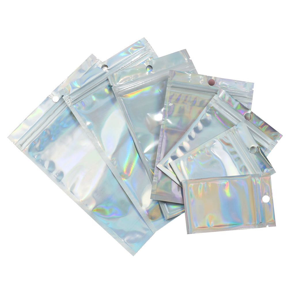 Our boldly finished holographic QuickQlick® packaging bags are the optimal storage choice. The unique finish will draw in customer's attention and make your products stand out. The holographic finish will warp and move as the light hits it from different angles. The clear window display allows the customers to see the stored products. These pouches also feature hang holes which can be used to store these packaging bags on wire racks or pegboards. The secure zipper opening let the package be easily sealed and opened.