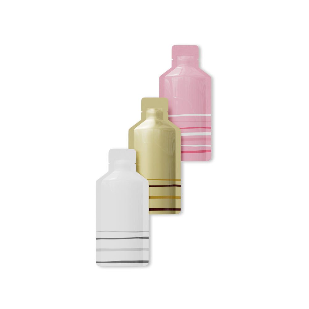 Get the best of both worlds with these premium bottle pouches! Get the stylish silhouette of a bottle with technical innovations of premium Mylar packaging bags. The sleek look and interesting stripe pattern give the pouches a memorable look. The glossy metallic foil shows off the vibrant colors of the bag. The durable Mylar material is both impermeable and flexible. Safely store liquids in these bags and never worry about leaks or spills. To make the bags airtight, heat seal the bottom using an impulse heat sealer. When you want to open the bag, pull on the tear notch under the “cap” of the bottle bag. The interior of the bags is coated with a food-safe material that will preserve the quality of the stored items. Make the jump to the future of liquid and gel packaging today when you try out these bags.