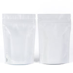With a combination of a matte finish and a translucent window, these bags achieve a uniformly soft appearance. The zipper seal at the top can create a reliable closure and allows the bags to be reusable. The bottom gusset increases the internal capacity and allows the bags to sit upright on countertops. The translucent window gives the bags a frosted view of the bag's contents. This model is unique because the backing wall has color on both the inside and outside. This means that the products you store inside of these bags will be framed against color.