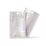 Customizable Clear and Half Diamond Holographic Mylar Flat Zipper Seal Bags with Round Hang Hole (Basic Printing)