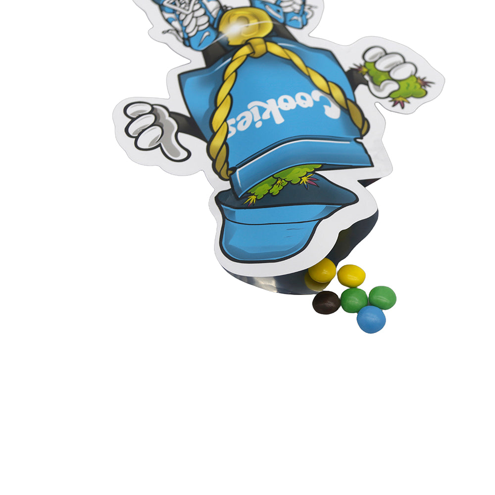 Satisfy your craving for fresh storage with our delightful Flat Zipper Seal Bags, featuring an adorable Blue Cookie Man die-cut design for a touch of playful charm. These 3.5g capacity pouches are expertly crafted from high-quality Mylar foil, guaranteeing superior smell-proof and odor-control capabilities to keep your contents discreet and perfectly preserved. The secure zipper seal provides reliable protection against moisture and air, making these die-cut Mylar bags a sweet yet highly functional solution for maintaining the quality and aroma of your special items.