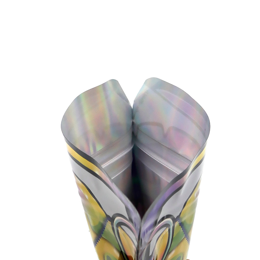 Protect your valuables with explosive style using our Flat Zipper Seal Bags, uniquely designed with a holographic grenade die-cut for a standout look. These innovative pouches are crafted from premium Mylar foil, ensuring exceptional smell-proof and odor-control performance to keep your contents discreet and fresh. The secure zipper seal provides reliable protection against moisture and air, making these holographic die-cut bags perfect for storing a variety of items while adding a bold, attention-grabbing aesthetic.