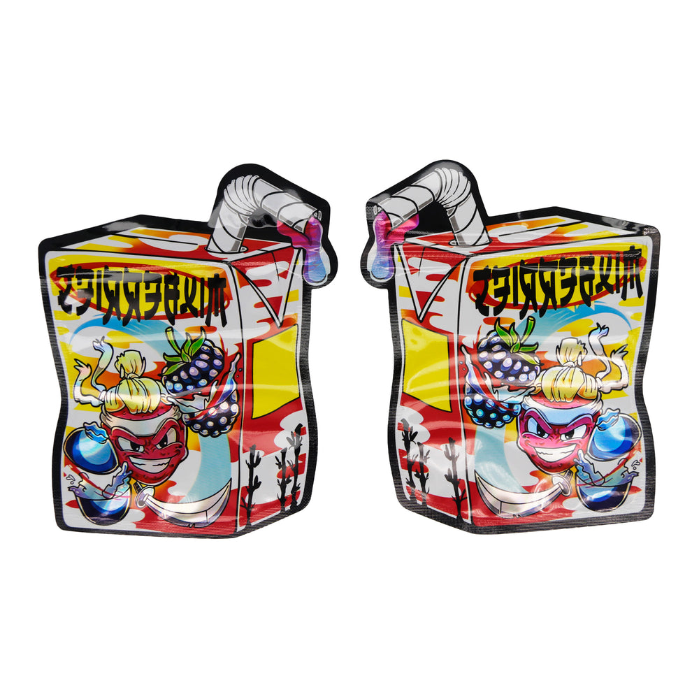 Sweeten your storage solution with our Flat Zipper Seal Bags, featuring an irresistibly fun Holographic Juice Box Die Cut design that's sure to quench your thirst for freshness for 3.5g of contents. Crafted from premium Mylar foil, these uniquely shaped pouches deliver exceptional smell-proof and odor-control performance, keeping your items discreet and their potency perfectly preserved. The secure zipper seal ensures a tight barrier against moisture and air, making these holographic die-cut juice box bags a playful yet highly effective way to maintain the quality and aroma of your special goods.