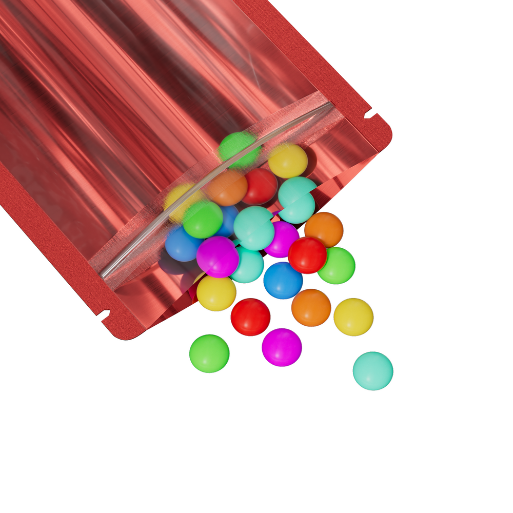The ultimate packaging solution for your products. With its stand-up feature, these bags are not only convenient to store but also make your products visible and accessible. But that's not all, the vibrant red color of these bags adds a touch of elegance and sophistication, making your products stand out from the rest. Crafted from the highest quality mylar foil, these bags are durable and strong, providing maximum protection for your products. No more worries about tears or leaks.