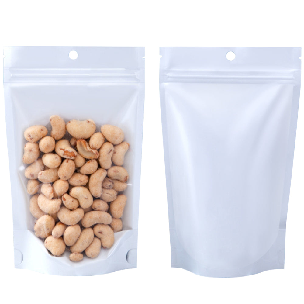 If you’re looking for the best way to store and show off your products in a professional manner, then look no further than the Single Side Glossy Half Arctic White Metallic Mylar Stand Strong® Bags. It features a luxurious glossy metallic sheen and a strong construction that will make your products stand out on shelves. Thanks to its resealable zipper closure, you can keep your items fresh and secure for longer periods of time. With its bottom gusset design, it is perfect for standing upright without any slipping out. The clear window allows customer to easily identify what’s inside without having to open the bags. Get this bag today and enjoy the convenience of storing in style!