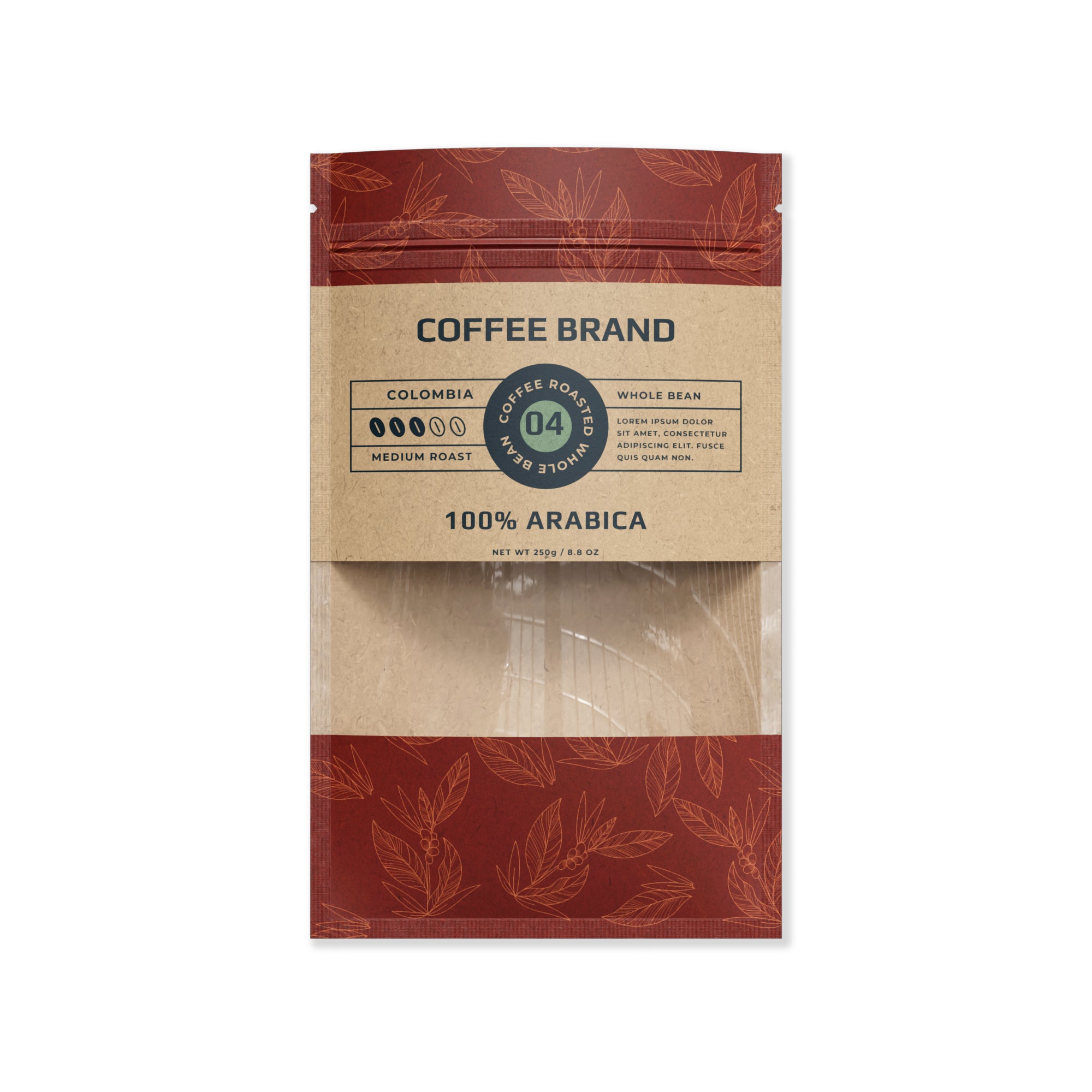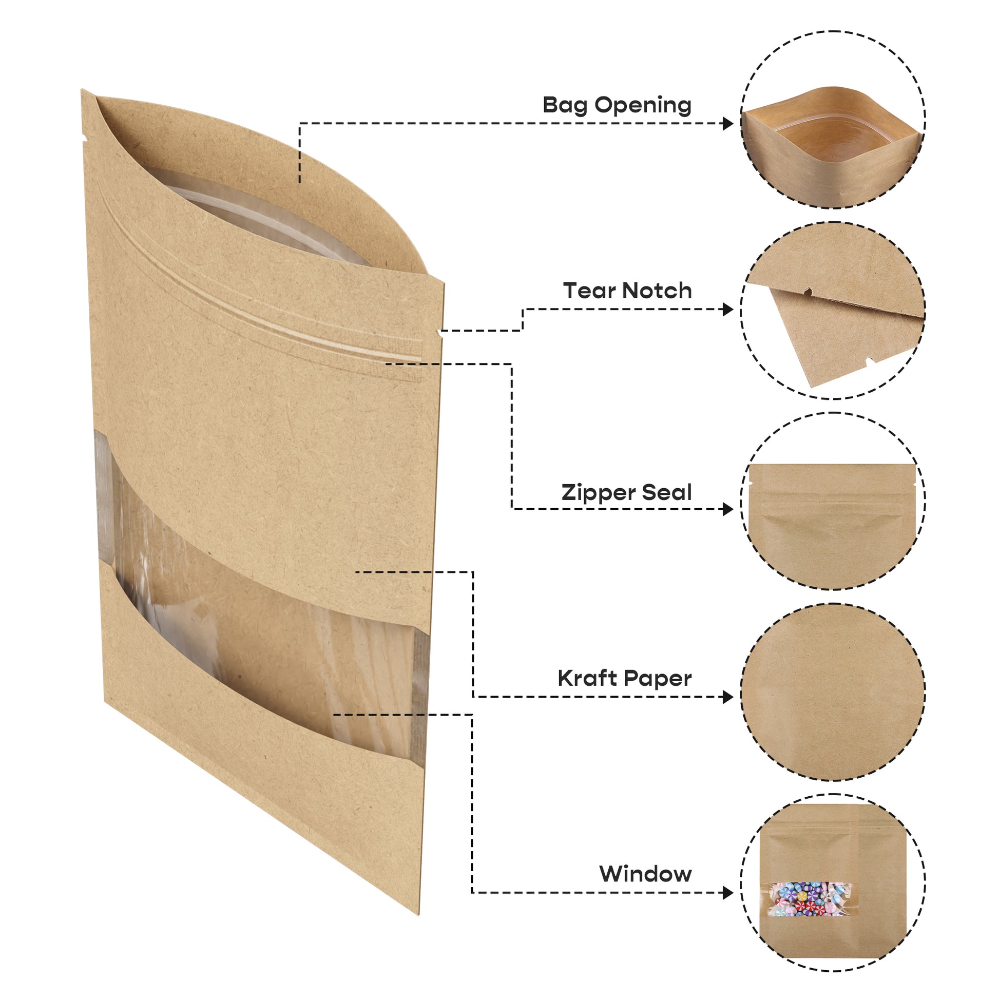 Customizable Vintage Kraft Clear Slit Window Flat Zipper Seal Bags (Full Customization)