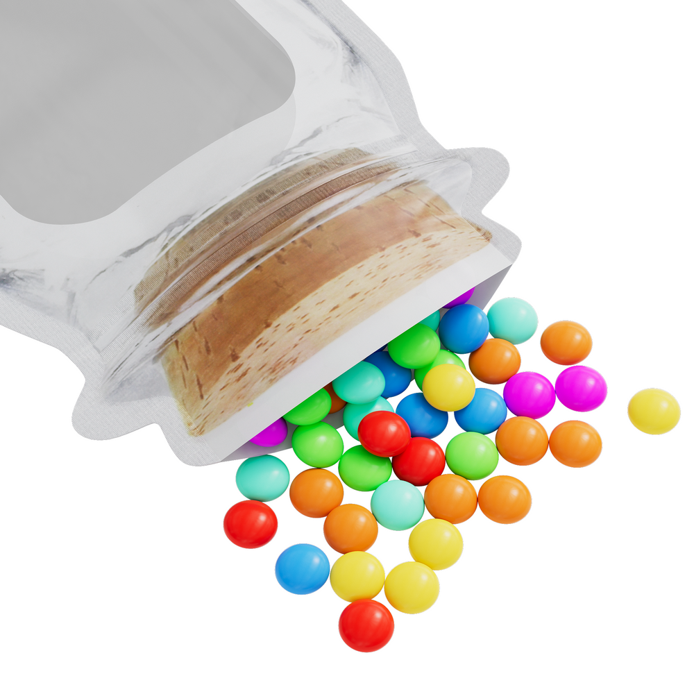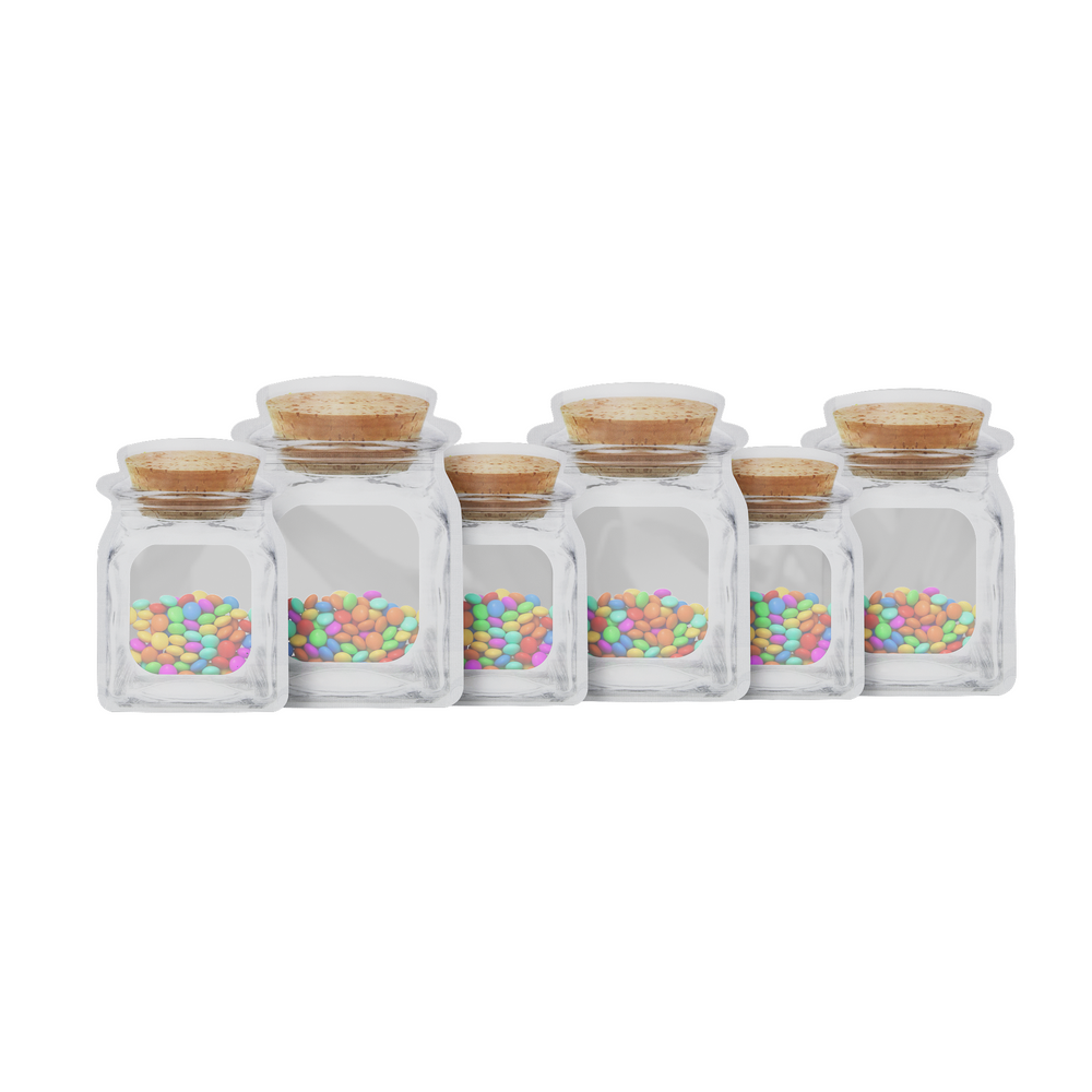 This unique and stylish glass bottle stands out with its jar-like shape, making it the perfect addition to your kitchen or living space. Not only is it aesthetically pleasing, but its resealable corky brown lid provides airtight sealing, keeping your contents fresh and protected. The translucent window allows you to easily see the contents of the bag, making it perfect for organizing and storing various items.