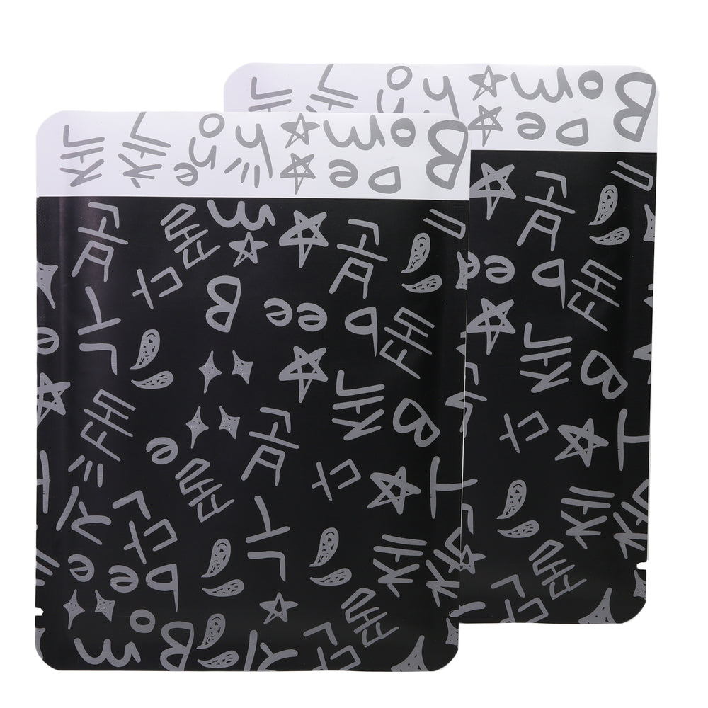 If you are searching for a fun and friendly personality for your brand, then you need to see these Chalkboard Black packaging bags. These pouches feature boldly printed doodles and notes that give the bags a joyful personality. The clean black coloring achieves a sleek pairing of color and graphics. The color makes these flat open top bags great for any charcoal-based beauty products. Try these bags out today to achieve success in your packaging journey.