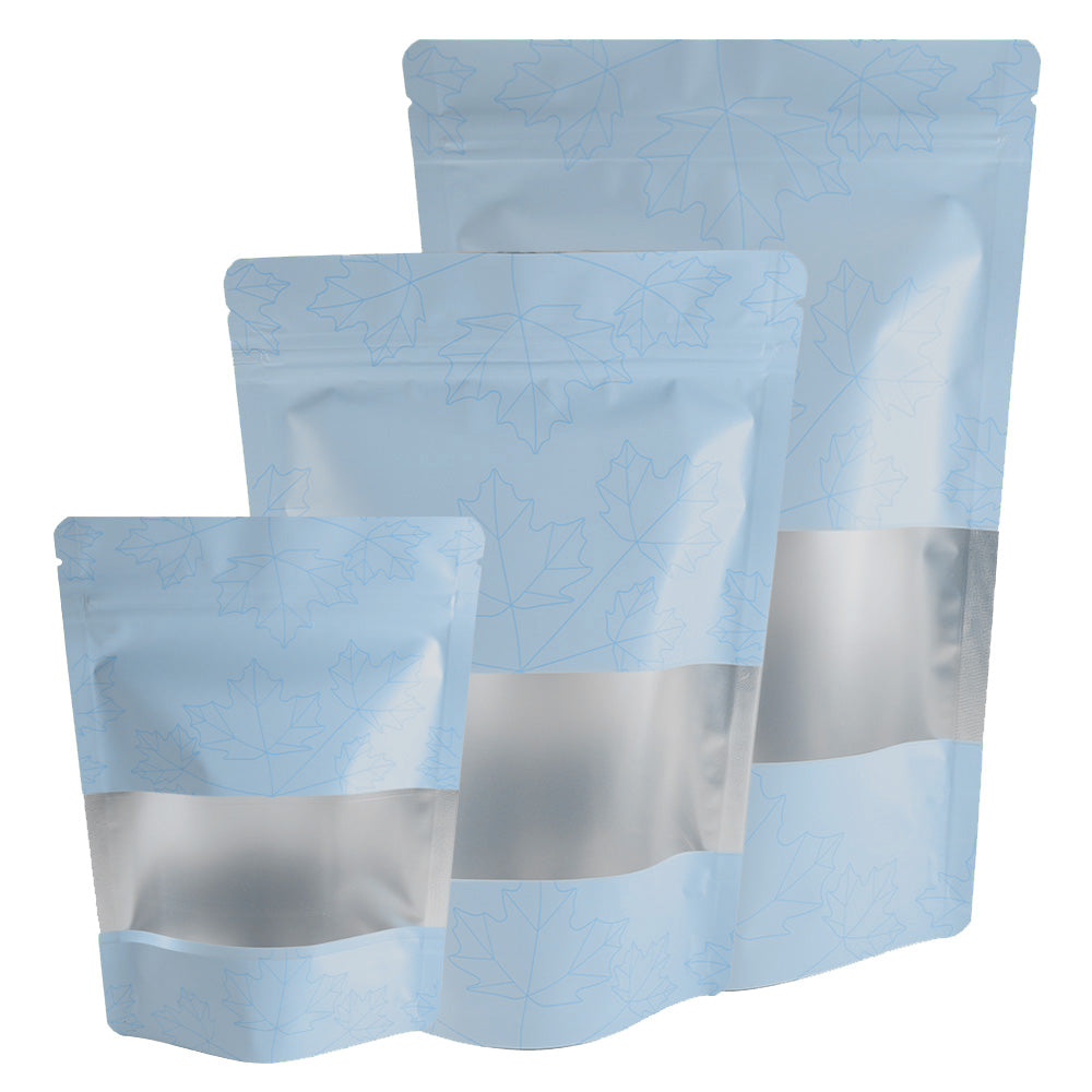 When you think of fall, you might think of colors like orange, yellow, or brown. What if you could expand the look of your seasonal packaging with a beautiful blue? This autumn blue bag consists of tasteful leaf designs that adds festivity to the color. This Stand Strong® bag has a bottom gusset that will properly stand on any shelf or other flat surface. Plus, this aluminum bag is 100% food-safe, flexible, and heavyweight for extra durability.