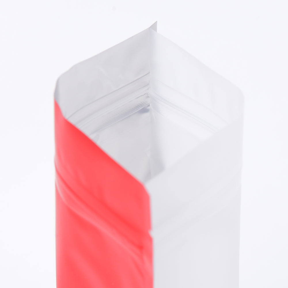 Good packaging starts at the foundation, just like laying bricks. This half-brick red Stand Strong® bag will provide you with the features you need for success. For example, the metallic film material will preserve your snacks for a much longer duration. Want to show off your product on one side? No problem. This bag is single-sided for just the right amount of visibility. Also, this bag comes with a bottom gusset that allows it to hold a larger capacity of items and stand on any flat surface.