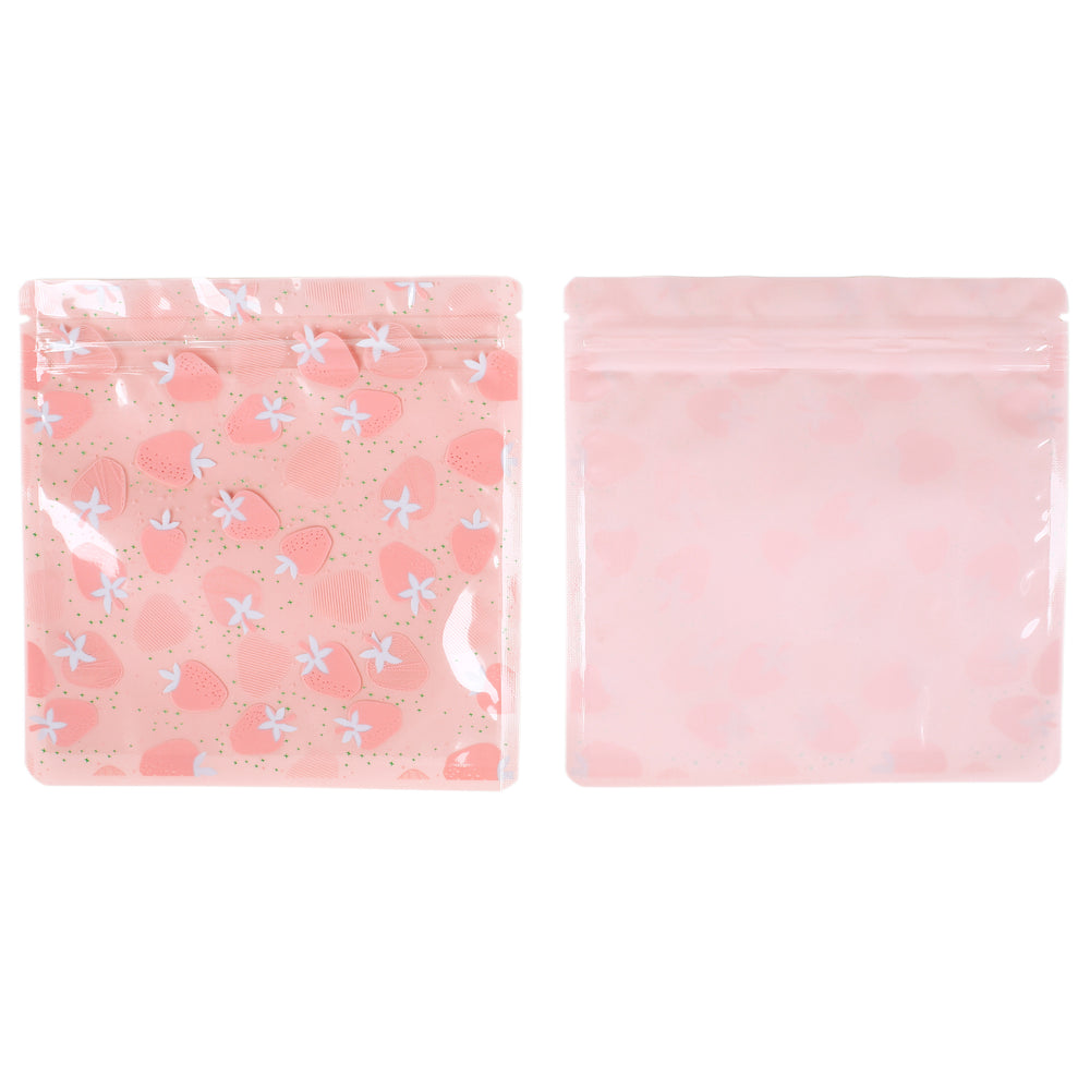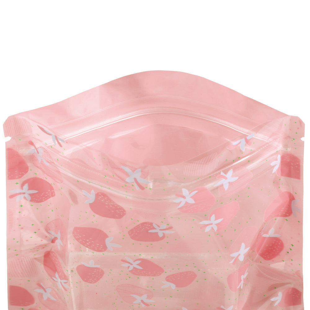 Freshen up your brand image with QQ Studio's Strawberry Pink packaging bags. These QuickQlick® zipper seal pouches have a cute and colorful appearance featuring a strawberry pattern set on beautiful pink poly-plastic. The result is a cheerful bag aesthetic that bursts with style. The zipper seal and clear window add to your packaging experience and maximize the potential of your products.